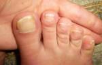 Признаки грибка ногтевых пластин на ступнях: